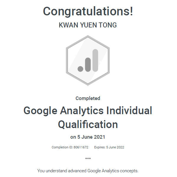 My Google Analytics Individual Qualification Completion ID is 80611672.